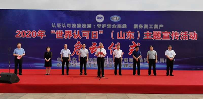 6月9日,是第十三个“世界认可日”,今年的主题是“认证认可检验检测:守护安全底线,服务复工复产”。当日,山东省市场监管局和临沂市人民政府在临沂市五洲湖广场联合举办了全省“世界认可日”(山东)主题宣传活动。山东省市场监管局二级巡视员史亮峰、临沂市人民政府副市长郑连胜,省局相关业务处室、临沂市局、临沂市检验检测中心,相关行业协会、认证检测机构、新闻媒体以及社会各界近百余人参加了活动。